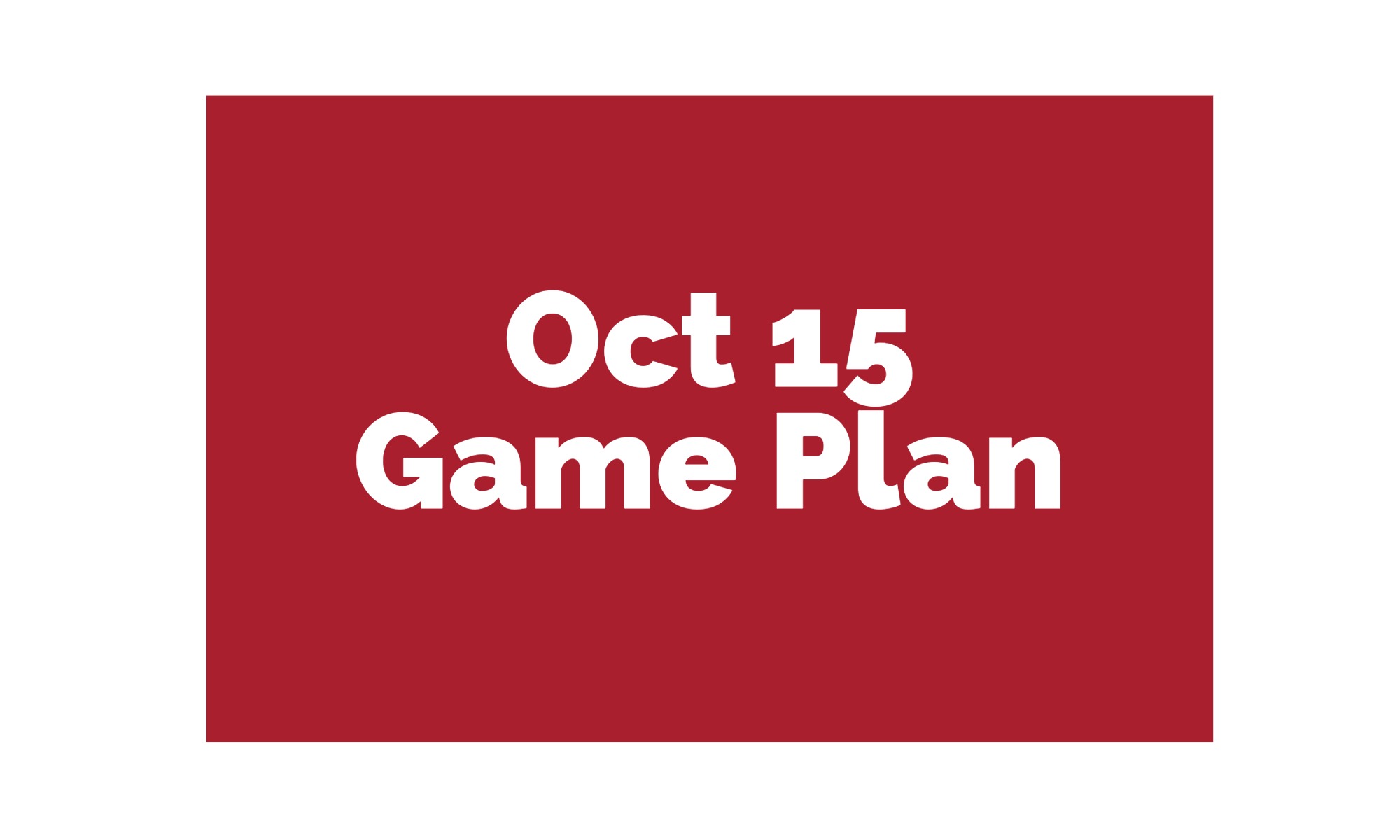October 15th Game Plan