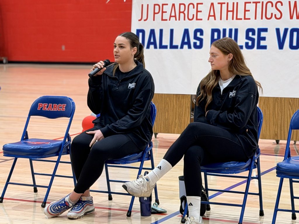 What a game-changing morning for our J.J. Pearce female athletes! Dallas Pulse, North Texas’ first women’s major-league volleyball team, visited for an inspiring Q&A session. Students had a chance to ask questions about college recruitment, balancing sports & school, how to have the heart of a competitor, and going pro.