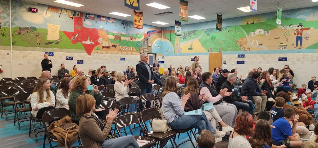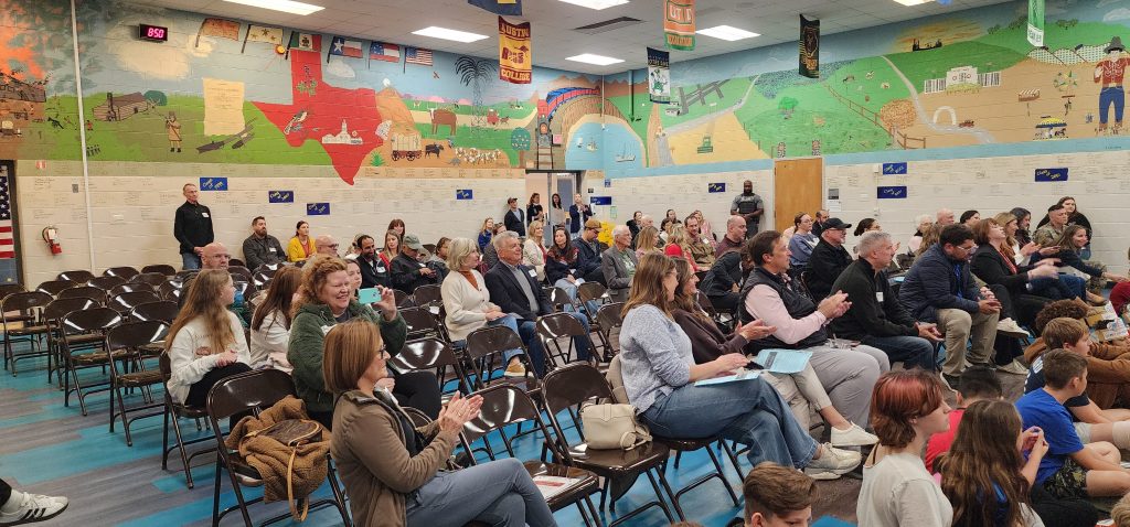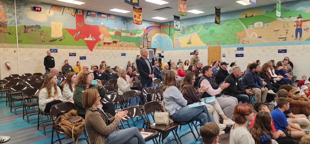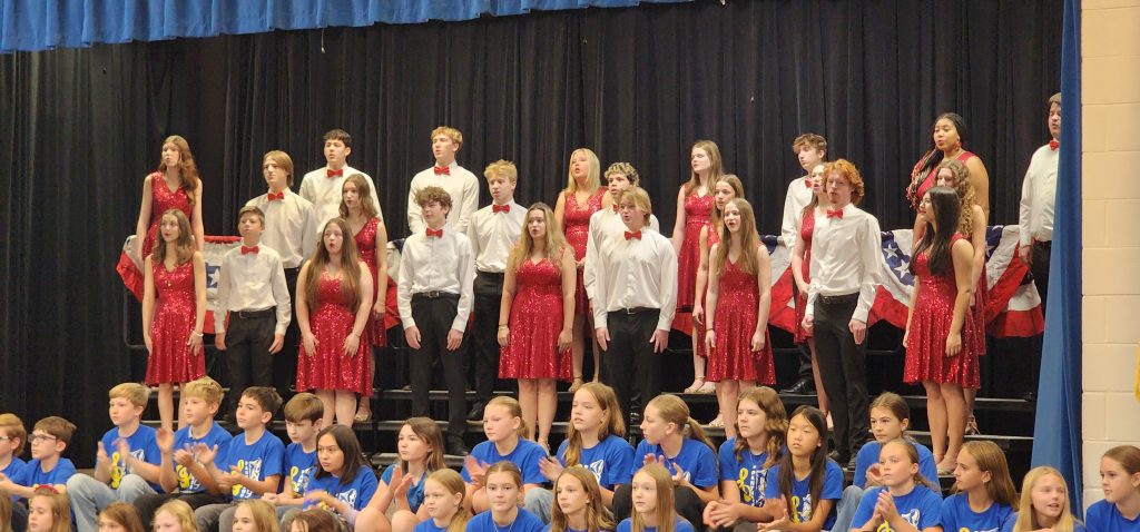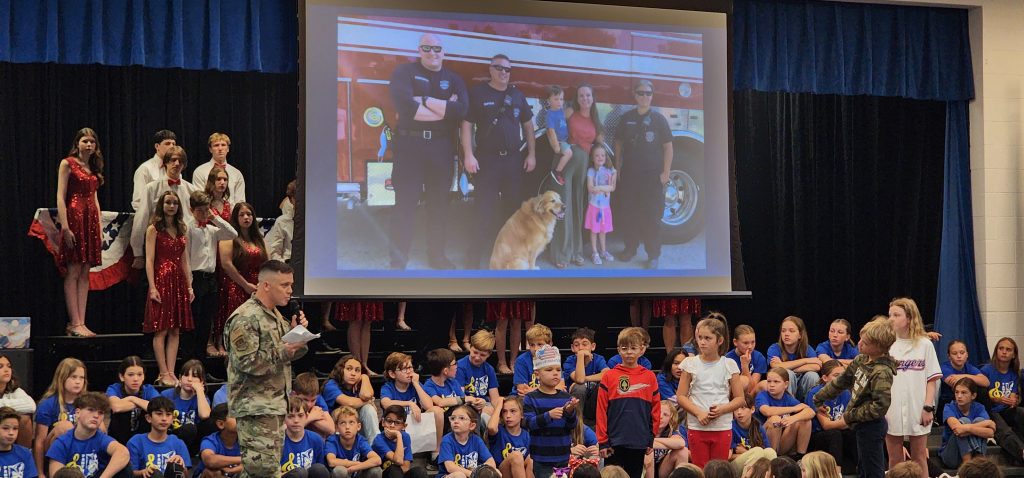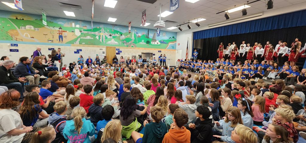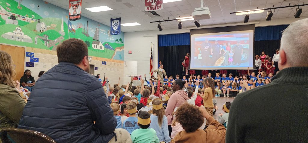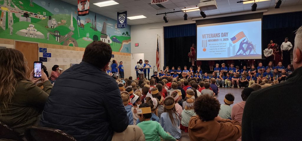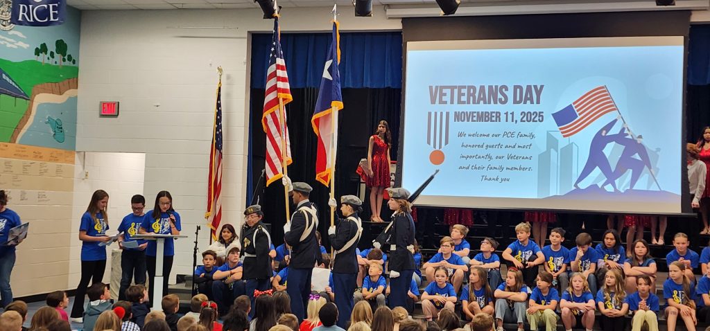Prairie Creek Elementary honored Veterans Day today with a heartfelt celebration that brought students, staff, and families together to recognize the bravery and sacrifice of our nation’s heroes. The school choirs filled the room with patriotic songs, setting a tone of gratitude and pride as veterans from every branch of the military were celebrated. A special guest from the U.S. Air Force shared an inspiring message about service, perseverance, and the importance of giving back, reminding students that honoring veterans begins with living lives of respect and gratitude every day.