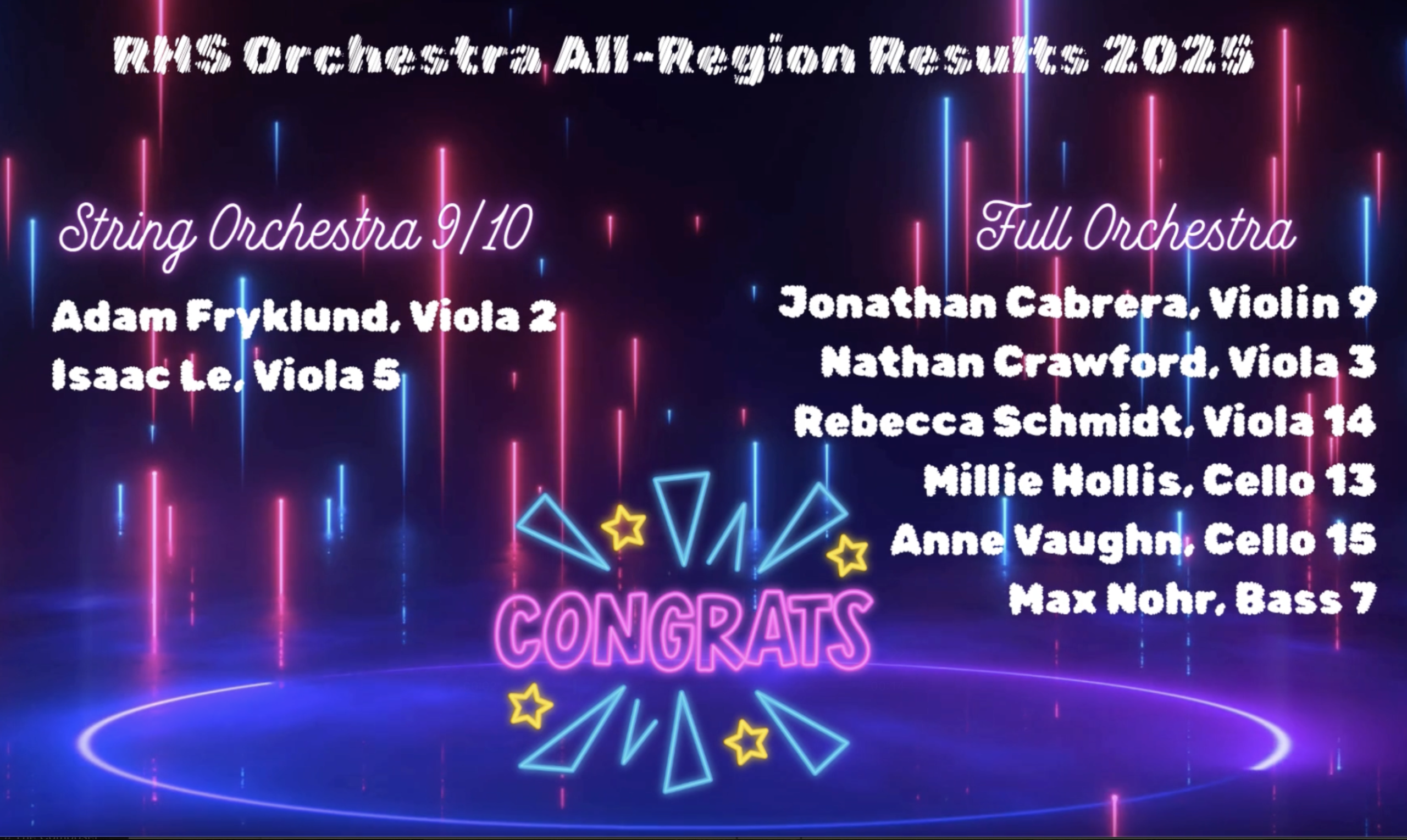 Congrats to our RHS orchestra students who auditioned and made it in to the TMEA Region 3 All-Region orchestras!