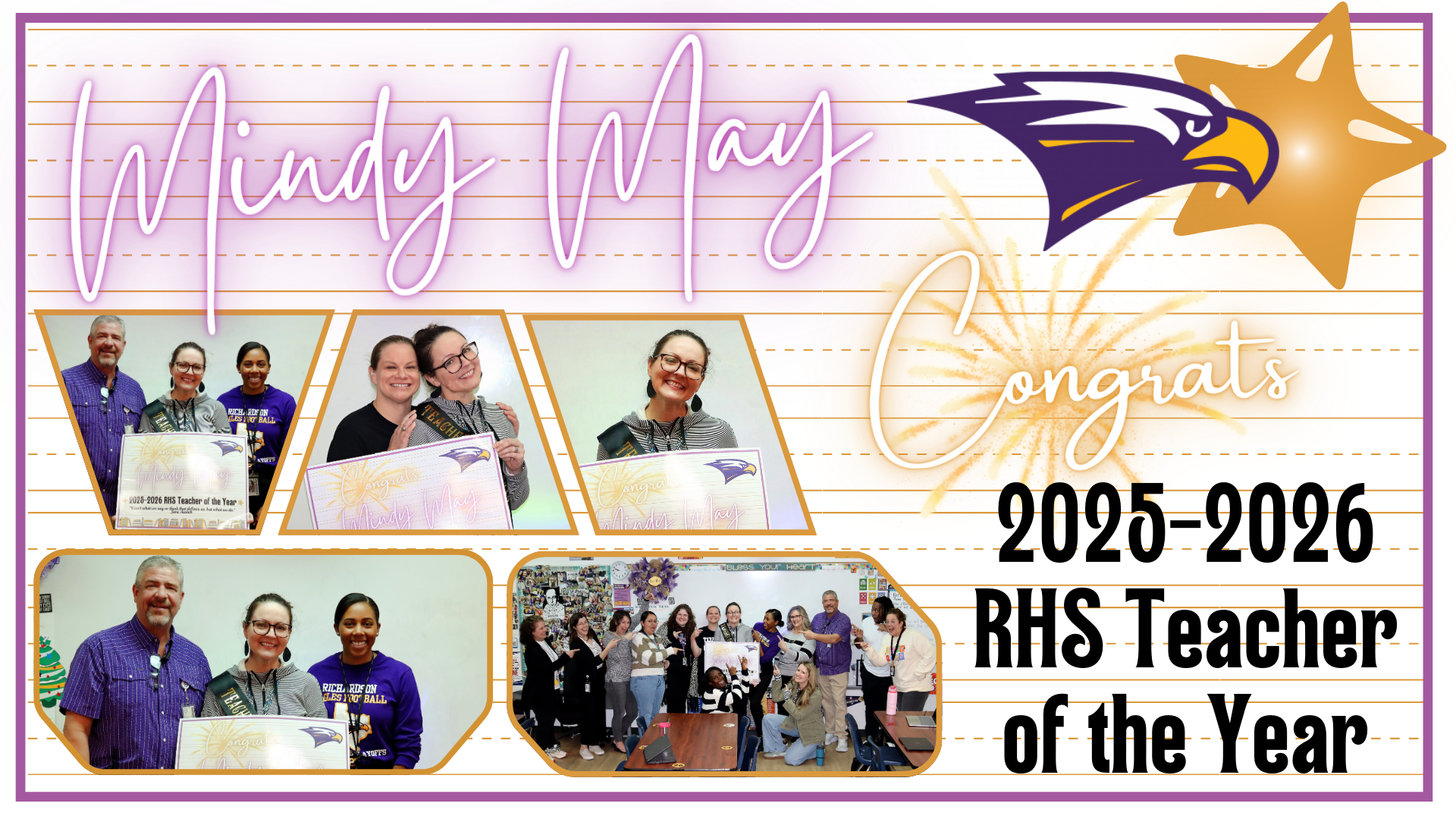 We are thrilled to announce that Mrs. Mindy May has been selected as the 2025-2026 RHS Teacher of the Year!