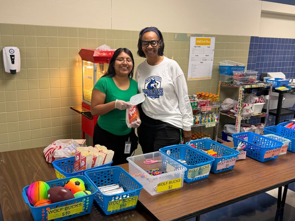 Students receive Wolf Bucks for being caught following the PBIS behavior standards. Throughout the quarter, students collect these Bucks and then at the end of the each quarter, the Wolf Buck Store opens! Students can then use their “money” to buy snacks and prizes! It’s a fun day when they get to get physical rewards for following the PBIS guidelines!