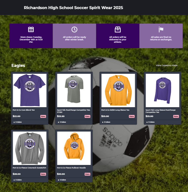 Richardson High School Boys Soccer: 2025–2026 Season Schedule & Spirit Wear Sale